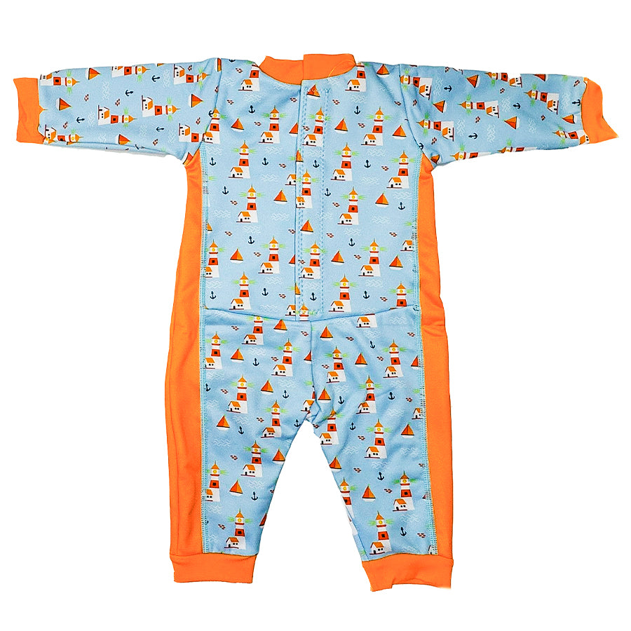 The Warm In One works by trapping air between the layers of the wetsuit and helps babies to regulate their body temperature, whilst the soft fleece lining makes them feel warm. Cuffs around the wrists and ankles help to maintain warmth and keep barrier creams in place.